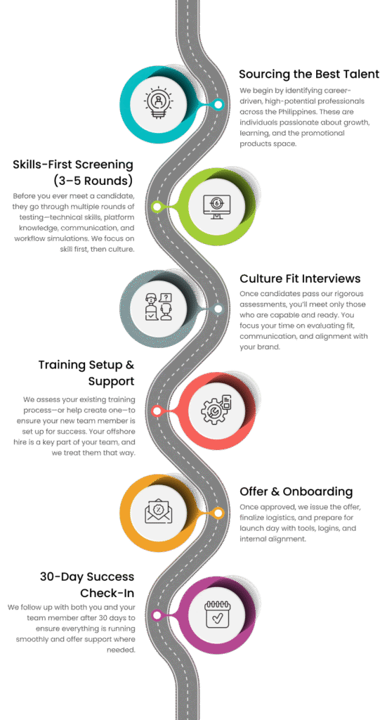 With over 20 years of experience in the promotional products industry from both supplier and distributer sides, we understand the unique challenges and opportunities this space presents. That’s why we do more than just help you hire offshore talent — we help you build freedom.